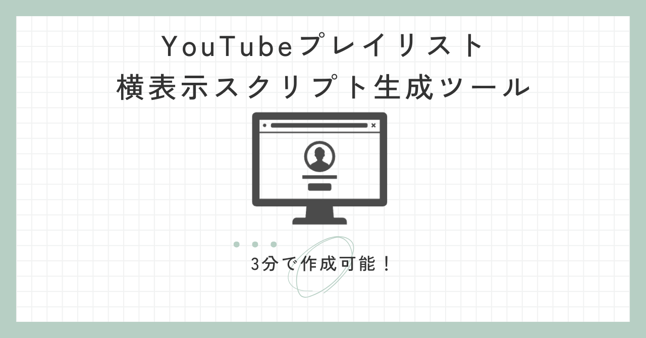 YouTubeプレイリストをウェブサイトに横一列で表示するスクリプトを簡単に生成するツールです。